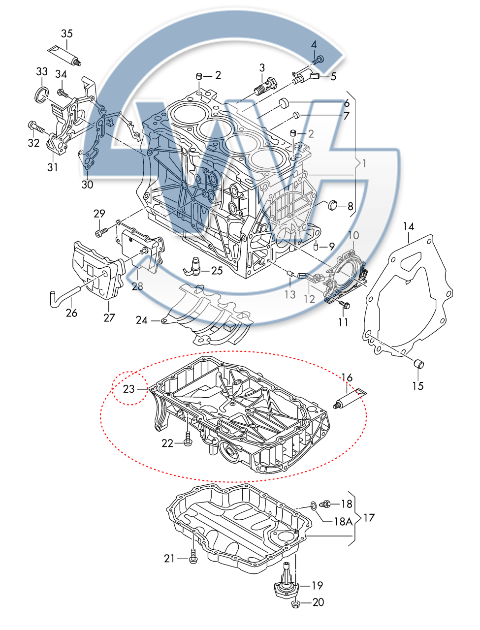 Volkswagen Golf 7 1.4TSI Yağ Karteri Üst Gövdesi 04E103601L OEM / ORJINAL